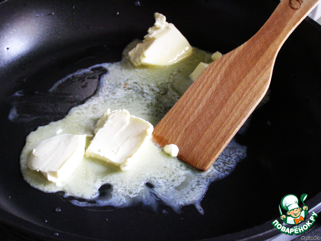 Пока манты варятся, приступим к соусу. Масло растопить на сковороде.