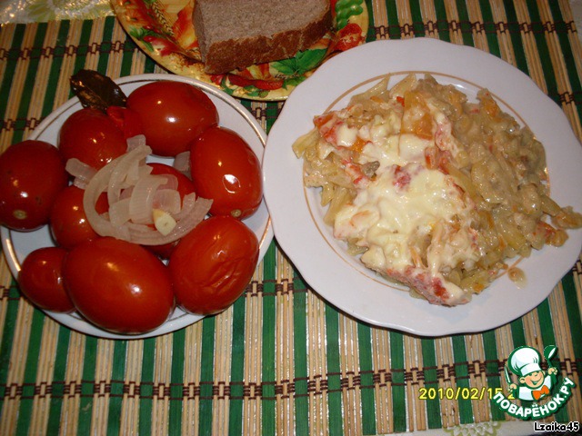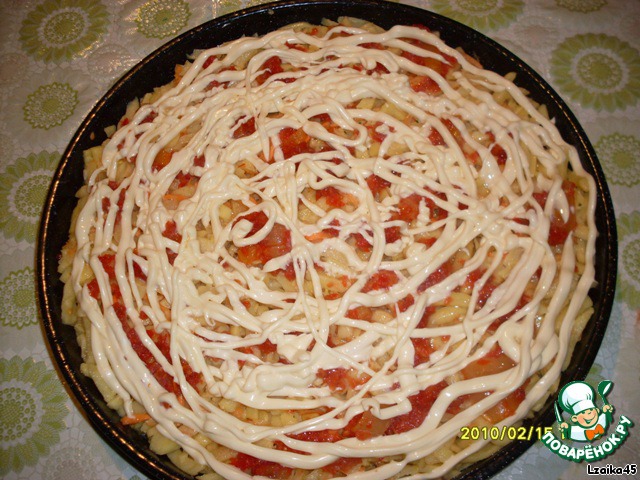 Сверху положить слой лечо, полить майонезом и влить молоко. Закрыть все это дело фольгой и поставить в духовку минут на 40-50...