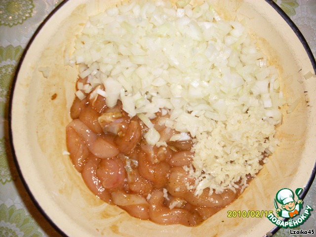 и нарезанный кубиками лук. Все хорошо перемешать и оставить на часок помариноваться.