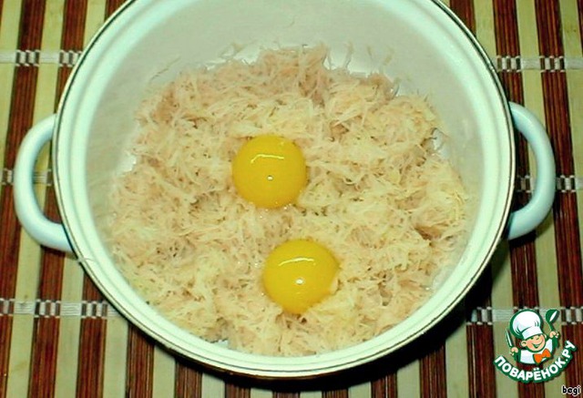 Картофель вымыть, очистить от кожуры и натереть на крупной или мелкой терке.