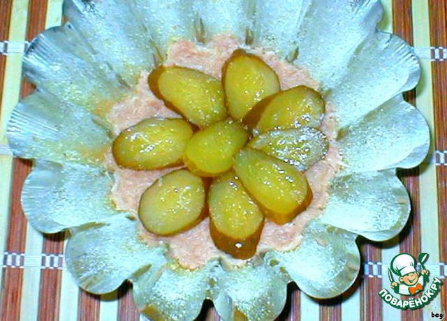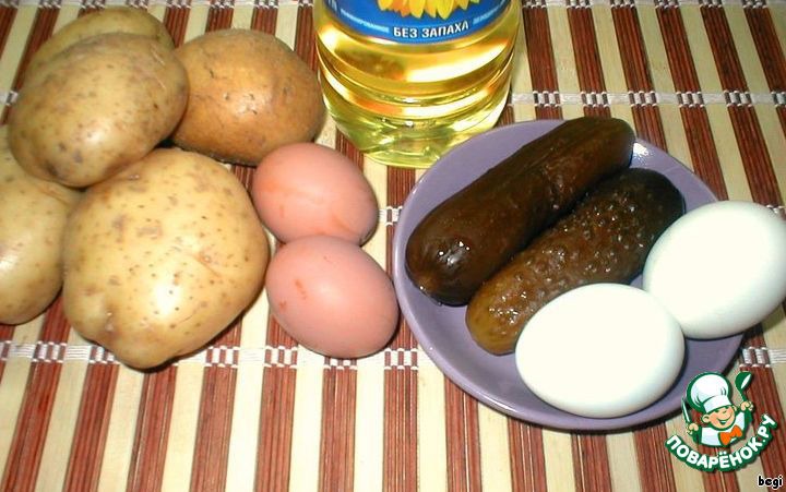 Соленый огурец нарезать кружочками и выложить поверх картофеля.