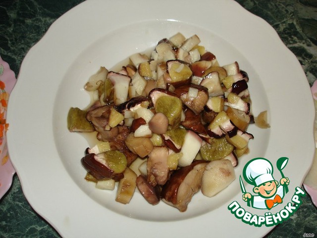 Грибы разморозить.