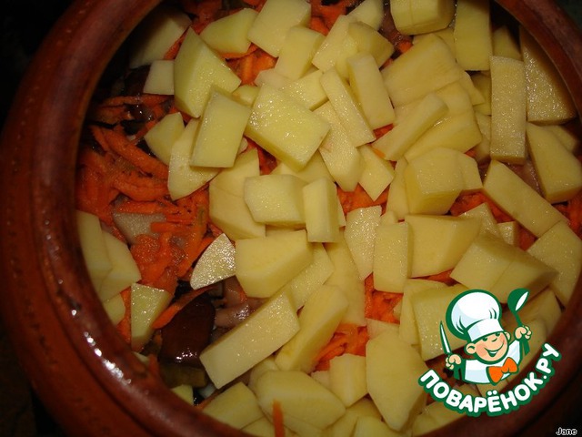 Далее грибы, морковь, картофель.