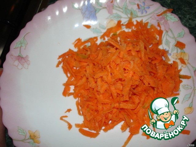 Морковь натереть на крупной терке.