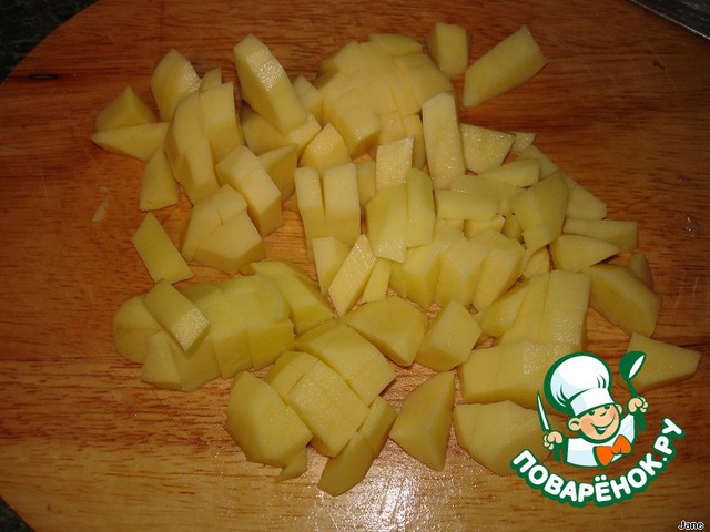 Картофель порезать маленькими кубиками.