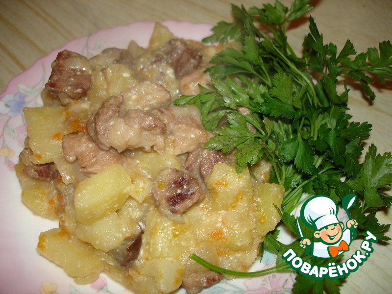 | Тушеный картофель с мясом, грибами и овощами |