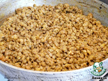 Замоченную чечевицу отварить до готовности в подсоленной воде (или же варите по инструкции, данной на пачке).