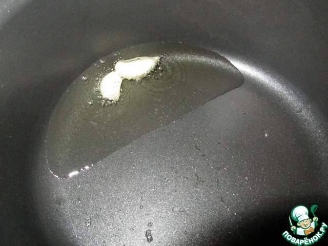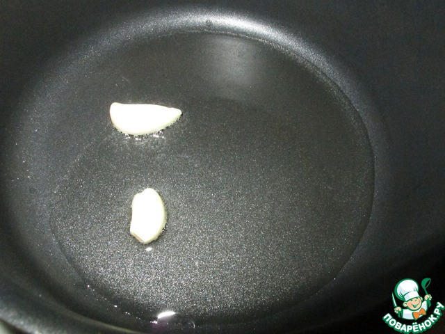Я всегда беру два зубчика чеснока, этого количества достаточно. На чесноке нужно сделать надрезы с обеих сторон.