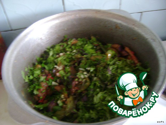 Можно также использовать хвостики от баклажанов.Очистить их от веточки и добавить к синеньким.