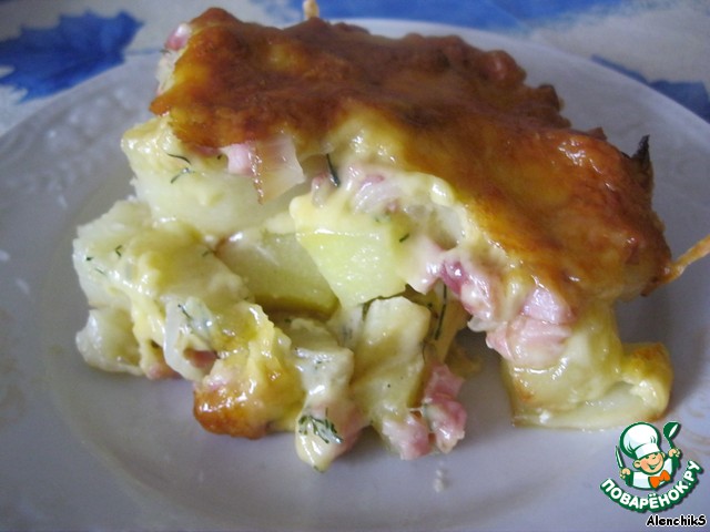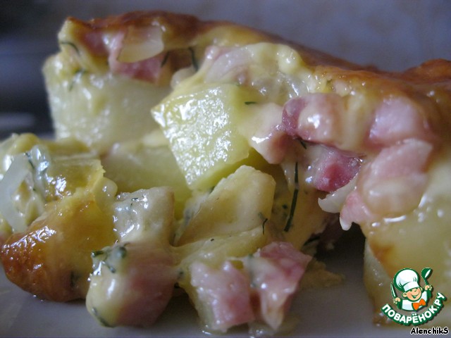Залить картофель яйцом со сливками, посыпать тертым сыром и отправить в разогретую до 180 градусов духовку на 15-20 мин., до образования румяной корочки.