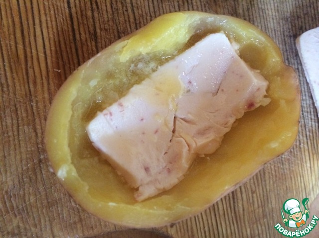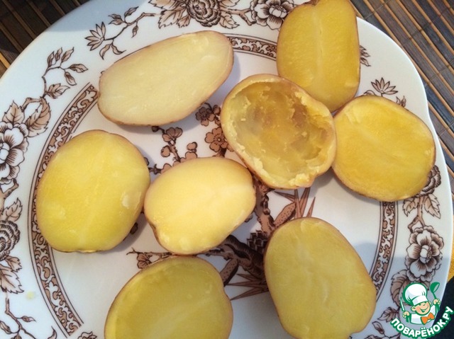 Ложечкой из картофельных половинок осторожно достаем мякоть, чтобы не повредить саму "лодочку".