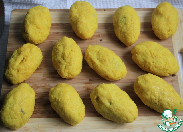 Разделить тесто на 16 частей. Руки смачивать холодной водой.
