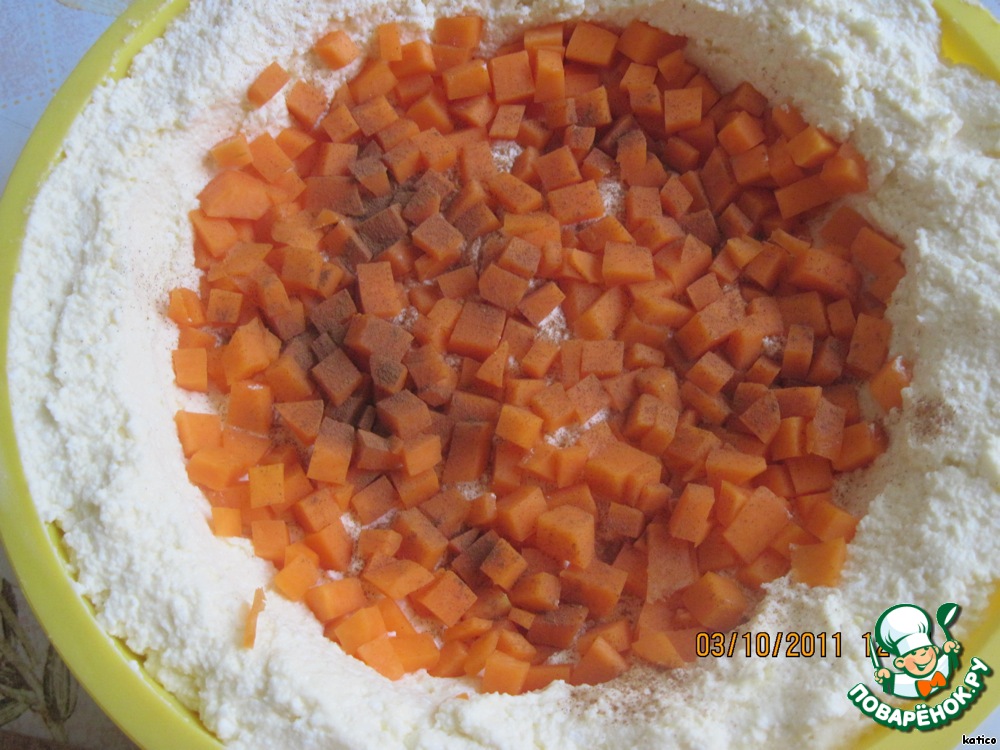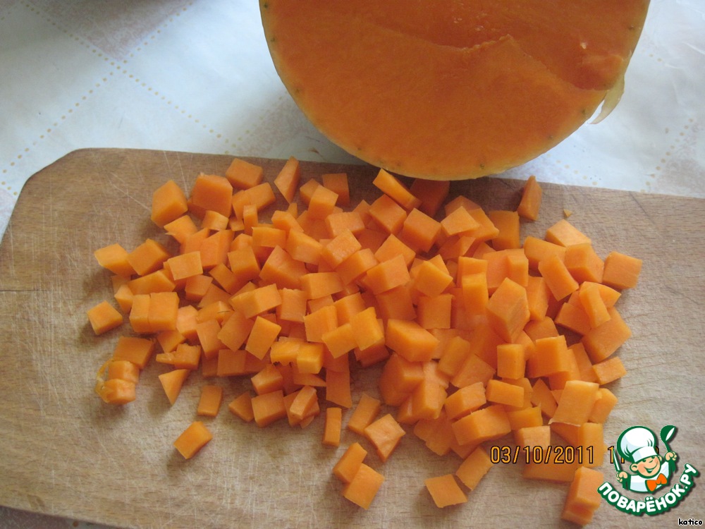 Свежую тыкву порезать мелким кубиком,