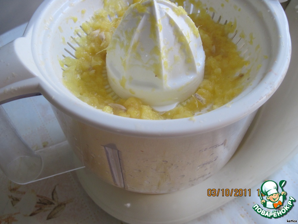 К смеси добавить кукурузный крахмал, апельсиновый сок,