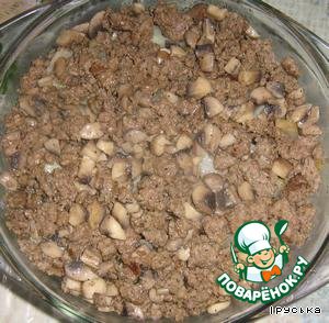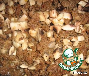 Добавить грибы, посолить, поперчить, жарить еще 5 минут.