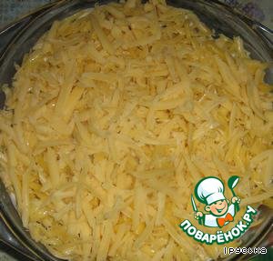 Посыпать сыром. Поставить в духовку. Запекать при температуре 180 градусов до образования золотистой корочки (около 20-25 минут).