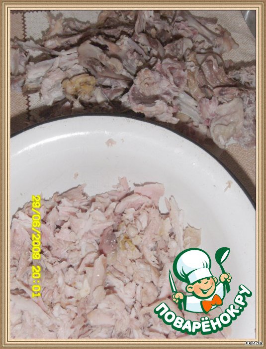 Собрались кусочки курицы ,вполне подошли для этого обеда,и не только)))отварила,очистила от косточек.