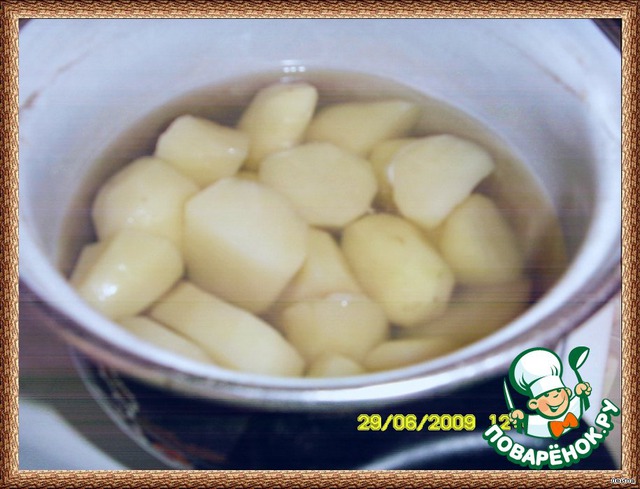 Из картошки приготовить пюре,но не очень жидкое.Делала сразу 2 блюда из картофеля,