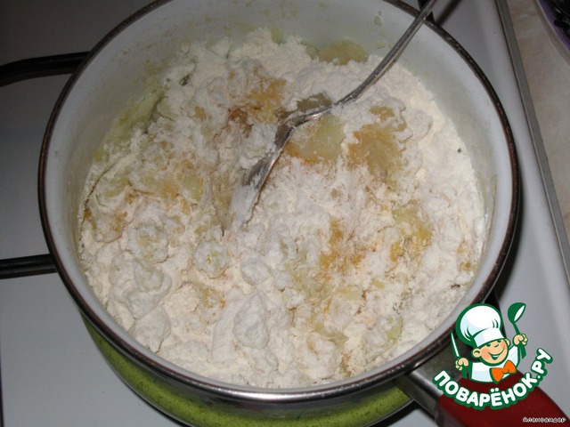 Приготовить картофельное пюре, добавить в него муку, яйцо и специи.