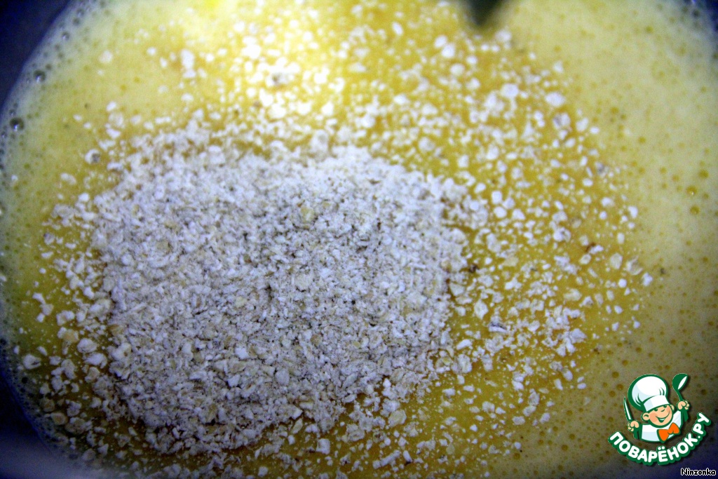 Добавляем сыр, соль, перец и овсяные хлопья и хорошо перемешиваем.