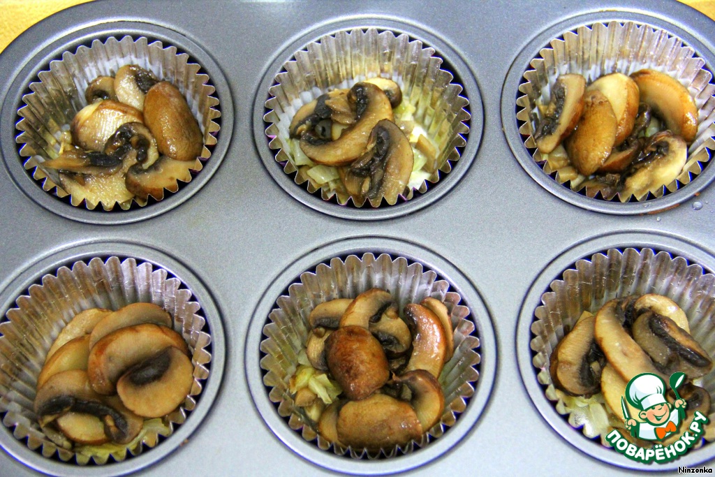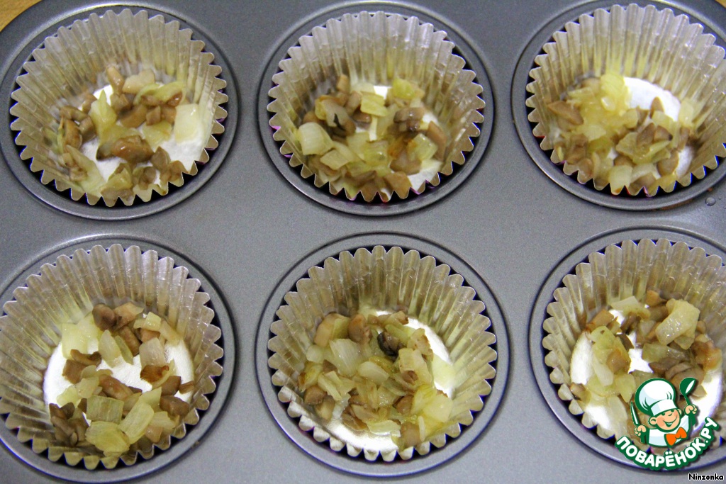 В формы для маффинов кладем сначала луковую смесь,