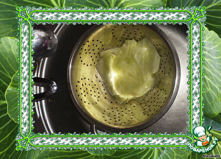 Капустные листья вымыть, порезать на квадраты или прямоугольники по 5-8 см.