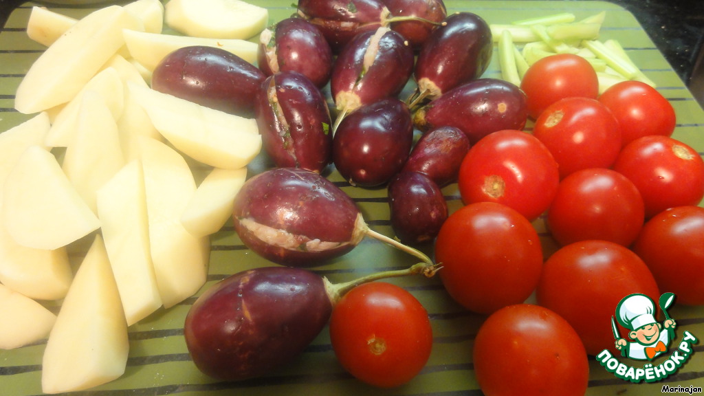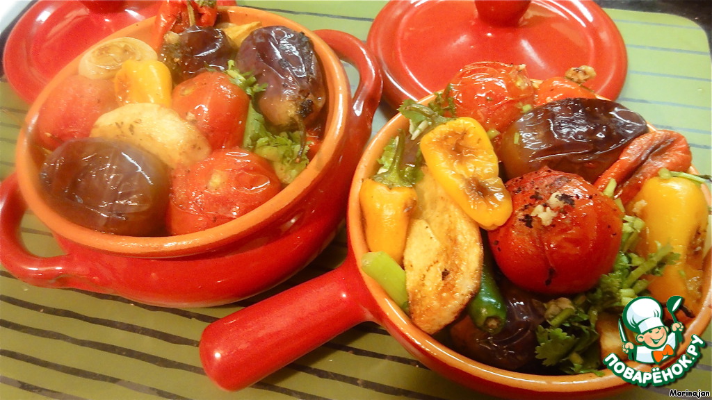И в конце помидоры , сверху выдавить чеснок и поперчить.