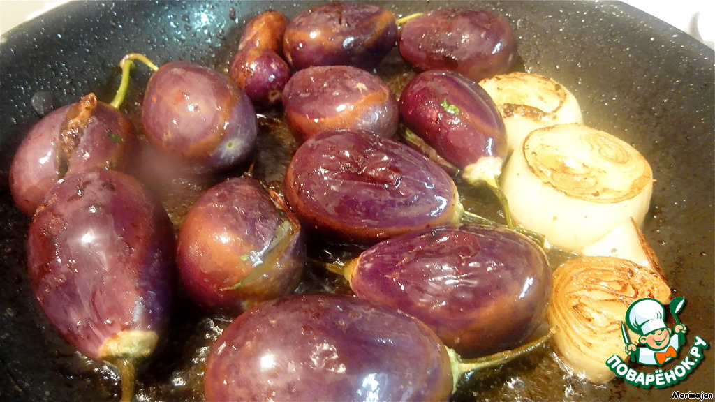 Обжариваем баклажаны, предварительно счищая у них хвостики,