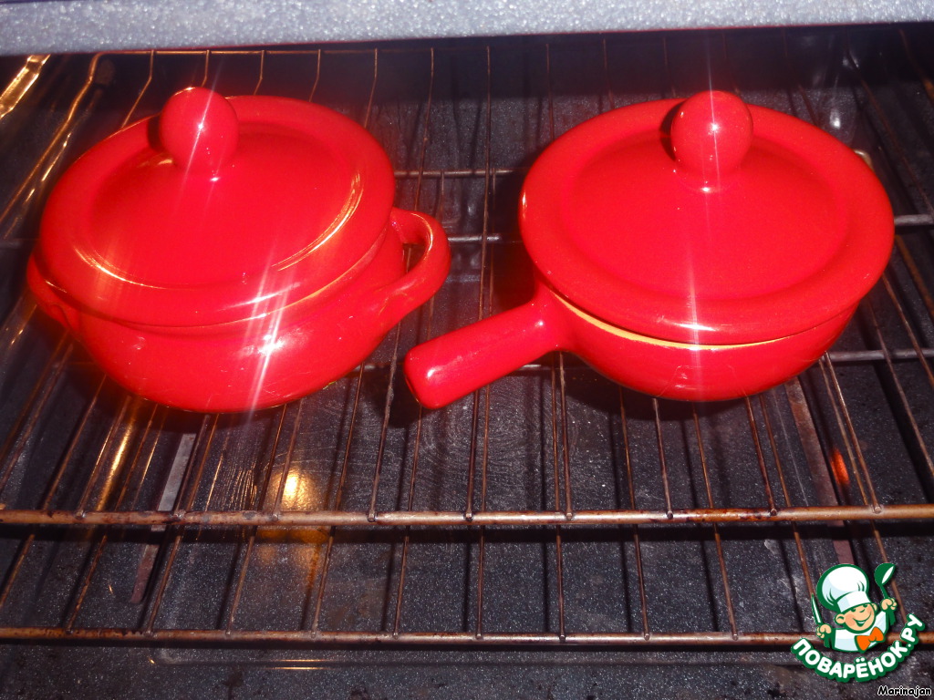 Складываем послойно в горшочки , пересыпая каждый слой зеленью.