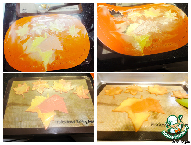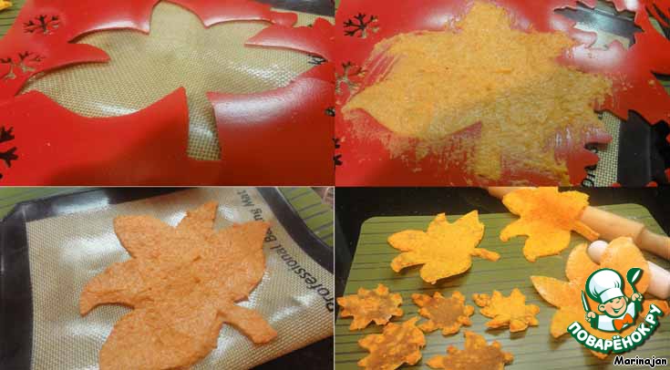Трафарет положить на силиконовый коврик, заполняем его морковной массой ,