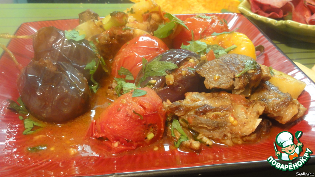 | В переводе с армянского "Кер у сус" - "Ешь и молчи". Это блюдо, как танец Танго вдвоем , блюдо - молчание, а скорее это блюдо - касание. Можно говорить, говорить... и так до бесконечности, но не быть услышанным. И тогда, как в танце, нужно касание - легкое, мимолетное, с тревогой. Слова застревают вместе с ощущением незаконченности касания... На просторах интернета под этим названием идут различные рецепты. Но я предлагаю мой, я создала его, это мой рецепт. Это мой танец, с которым я выхожу на конкурс "Осеннее танго", а танцевать мы будем на листве-чипсах из овощей. |