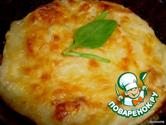 Раскладываем полученную массу, присыпаем тертым сыром и отправляем в разогретую духовку до образования румяной корочки