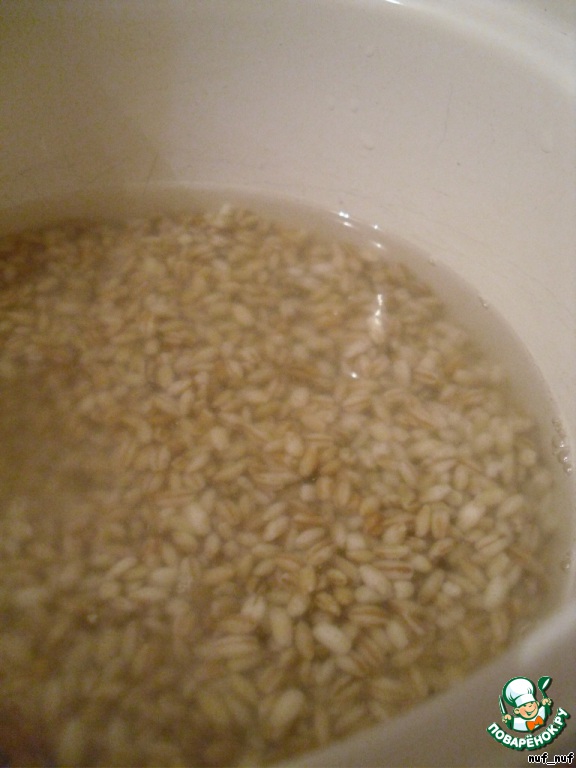 Тщательно промоем перловую крупу. Зальём горячей водой и оставим на 4-5 часов. Можно на ночь.
