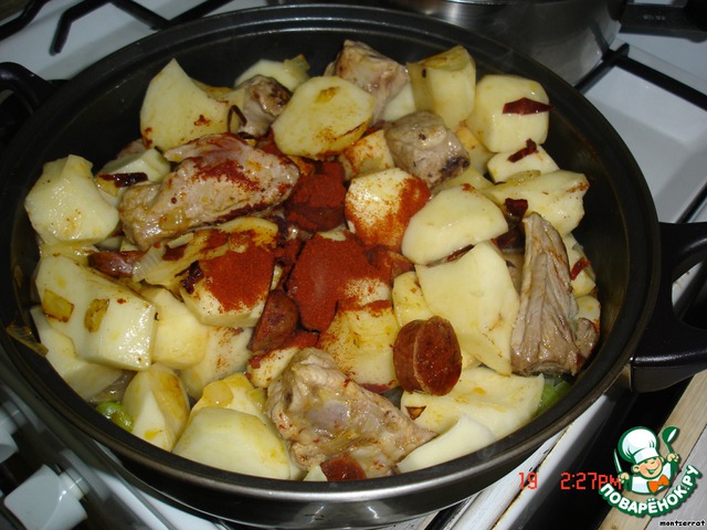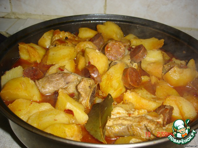 | Patata a la Rioja-так называется блюдо в оригинале. Блуждая по кулинарным сайтам, я увидела фото с таким же названием, но изображенное на нем блюдо не имело ничего общего с оригиналом. Ла Риоха-одна из провинций Испании, известная своими красными виноградными винами и традиционной кулинарией. Я считаю, что к старинным рецептам надо относится бережно. Картофель по-ла Риохски пользуется заслуженной популярностью и известен далеко за пределами региона. Я решила восстановить справедливость и приготовила настоящую картошку по ла Риохски, используя настоящие испанские продукты. Итак, приступим... |