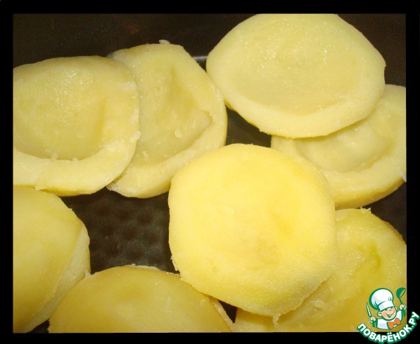 Каждую половинку наполняем начинкой и соединяем их. По желанию присыпаем картофель любимыми специями.