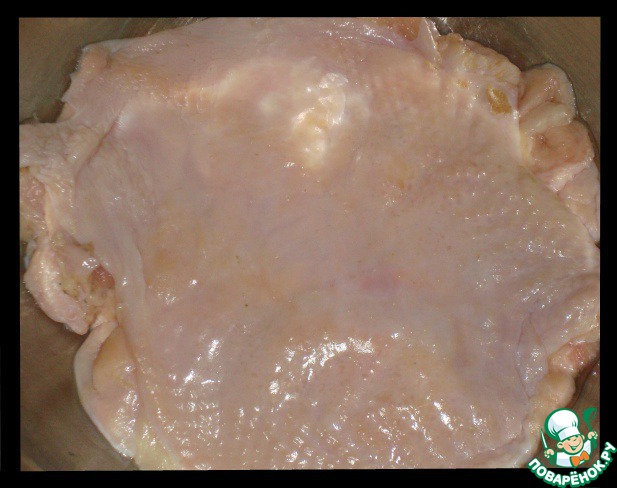 Куриную кожу моем, сушим и солим с внутренней стороны.