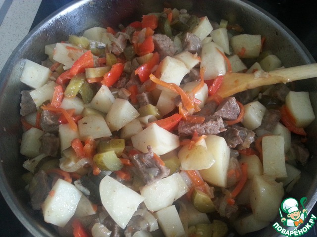 Мясо по-старорусски с перцем и маринованным огурчиком