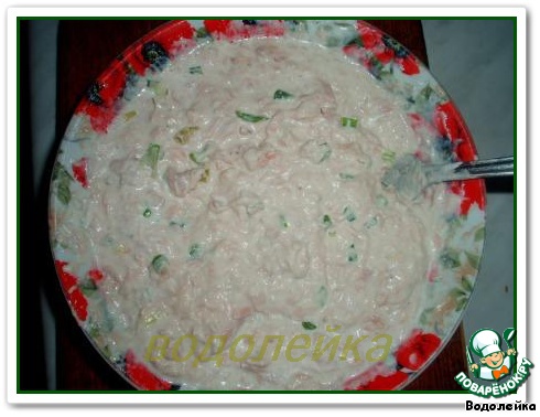 Берем тунец (сливаем с него жидкость) + сливочный сыр, нарезанный зеленый лучок.