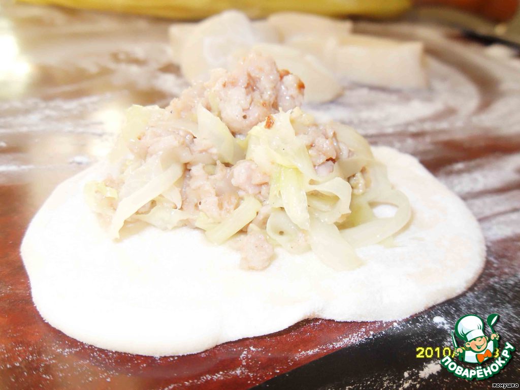 Сверху выкладываем начинку и залепляем края.