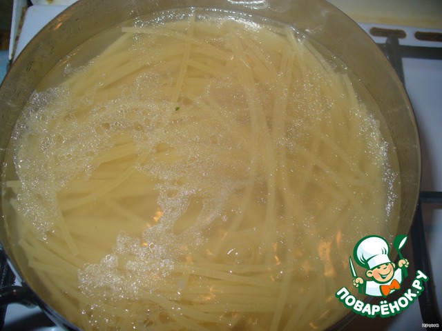 Одновременно с началом приготовления соуса нужно начать варить спагетти.