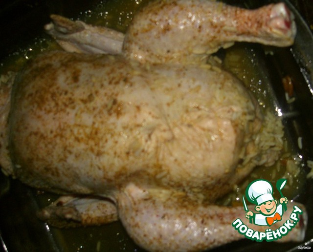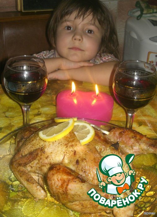 | Как-то моя мама во времена дефицита где-то по случаю приобрела индейку! Принеся домой загадочного зверя, стала думать, что бы из него приготовить. Близился Новый год и хотелось чего-нибудь этакого! Так родился этот рецепт! Потом это применили и на курице и готовим уже много лет. |