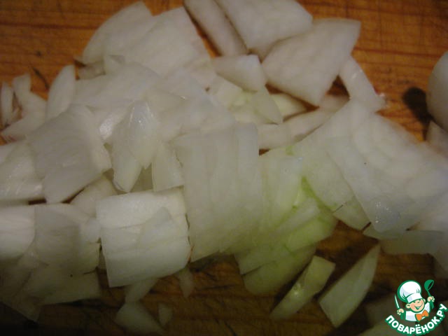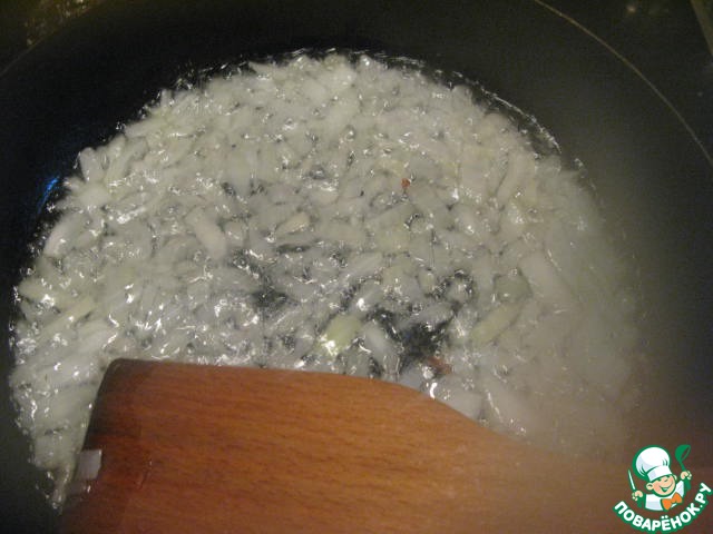 Лук обжарить с подсолнечным маслом до золотистого цвета.