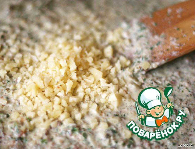 В конце приготовления добавить пармезан, посолить, поперчить.