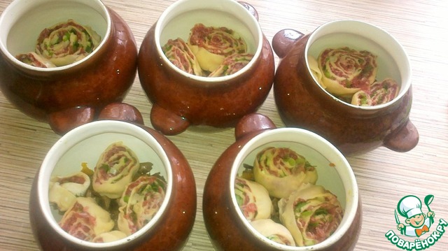 Запекаем в духовке закрыв горшочки крышечками 40-50 минут при 200гр.