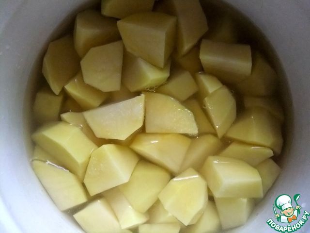 Отварить очищенный картофель в подсоленной воде.