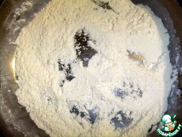 На сухой сковороде обжарить муку, пока она не изменит цвет.