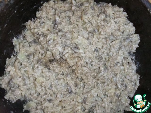 Добавить муку к фаршу, перемешать, посолить, поперчить, тушить еще 5 минут. Можно по желанию добавить еще ложку сметаны.