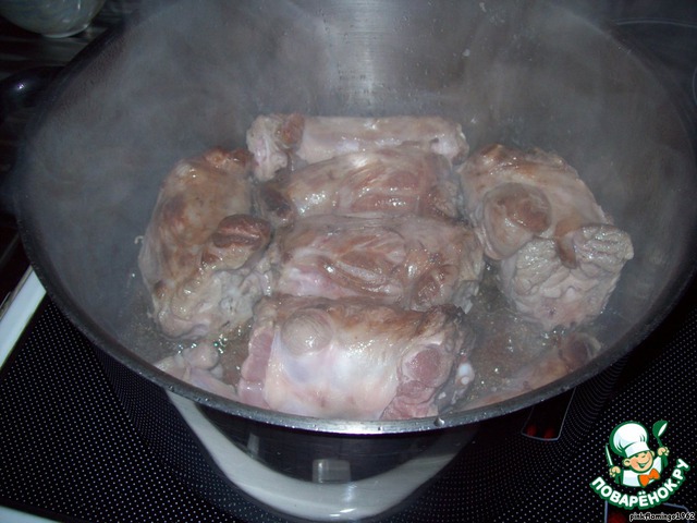 Мясо помыть и обсушить бумажными салфетками. В большую кастрюлю (желательно, чтобы кастрюля была высокая - см 60 в высоту, позже увидите, почему).