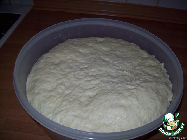 Накрываем чашку крышкой или плeнкой и убираем в тeплое место на 1-1,5 часа. Я обычно ставлю чашку с тестом под одеяло в кровать - поднимается хорошо.