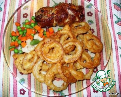 | Лук в нежном кляре послужит хорошим гарниром к любому блюду. |